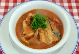 チャネルキャットフィッシュのスープ(アメリカナマズのトマトスープ) 適当に切り、水分をよくきっておく。鍋ににんにく、鷹の爪を入れてオイルで風味づけ。ここに玉ねぎなど野菜、切り身を入れて軽くソテー。トマトも加えて再びソテー。水を加えて煮込む。クリックで閉じます![]()