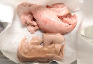 揚げると非常に柔らかく、うま味を含んだ肉汁が筋肉の層に満ちている。たっぷり食べても飽きの来ない味である。
