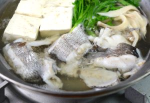 テナガダラのちり鍋 スケトウダラのちり鍋はとても味わい深いが本種も変わらない。水洗いして体幹部分を骨つきのまま適当に切る。湯通しして冷水に落として残った鱗とぬめりを流す。ザルなどに上げておく。このとき潰れやすいのでていねいにやる。これを昆布だしに酒・塩のつゆで煮ながら食べる。イヤミのない味わいでいくら食べても食べ飽きない。クリックで閉じます![]()