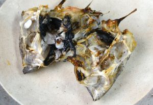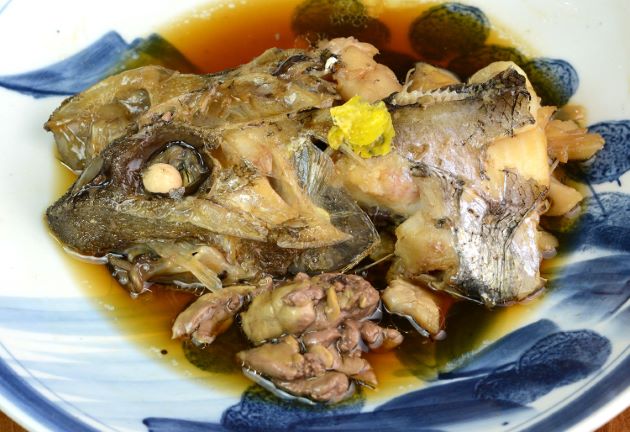 テナガダラの煮つけ 頭部にはあまり筋肉がついていないがいいだしが出る。少々身をせせるのは煩わしいが、うまさはその煩わしさが気にならないほどの味である。水洗いして頭部を半割にする。湯通しして残った鱗などをこそげ落とす。水分をよくきり、酒・砂糖・醤油・水を沸かした中で煮る。仕上げに肝を加えて火が通ったら出来上がる。クリックで閉じます![]()