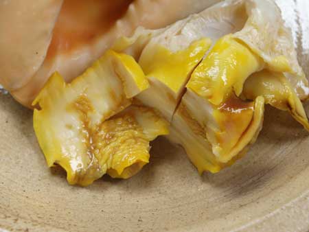 ゆでて身を取り出すのが普通だが、生に近い状態で食べるなら湯をかけるといいかも。