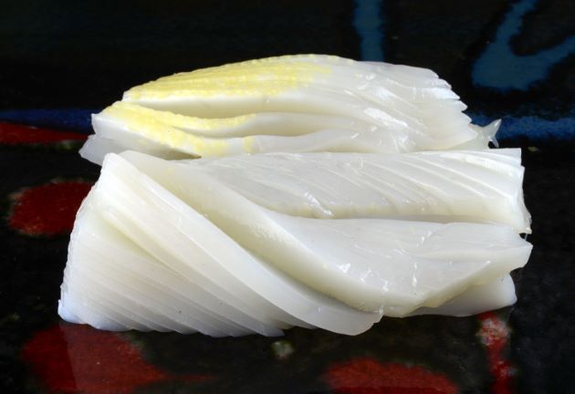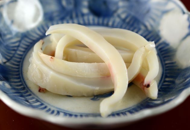 皮と身はやや硬い。外套膜の発光器の部分はとくに硬い。