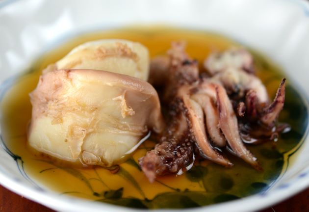 トビイカの煮つけ 小振りのトビイカを水洗いする。適当に切り、水分をよく拭き取っておく。鍋に酒・醤油・水を煮立たせた中で短時間煮て鍋止めする。スルメイカと比べると硬く締まるものの、味はいい。クリックで閉じます![]()