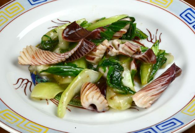 トビイカの中華炒め 水洗いして耳や胴などを切れ目を入れて適当に切る。野菜(ここではチンゲンサイ)などは軽くゆでておく。フライパンに油・しょうが・にんにくを入れて火をつける。熱くなってきたら野菜、イカを入れて短時間炒めて塩コショウ、海鮮スープに片栗粉を加えたもので軽くとじる。クリックで閉じます![]()