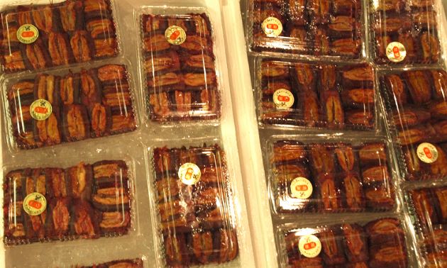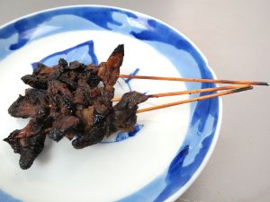 蒲焼き 数尾を筏状に串刺しにして焼いてタレをつけた。[愛知県豊田市足助]