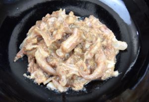 ドブカスベの煮つけ皮付き 本種は基本的に皮をむいて料理する。ためしに皮付きのまま煮てみた。適当に切り、輸送視する。冷水に落としてぬめりを流し、水分をよくきる。これを酒・砂糖・醤油・水のなかで煮る。本種には甘辛味が合うが、甘味を抜いてもいい。皮が意外にとろっとしておいしい。ただし微かに苦みが感じられる。クリックで閉じます![]()