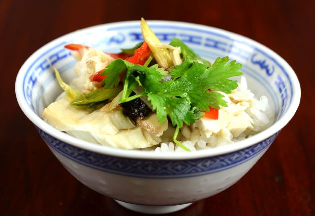 ナガタチカマスの蒸魚(清蒸) 筋肉内にコロイド状の脂が充満している。この脂はうま味があるのにさらりとして重くない。ここでは切り身にしてネギなどを敷いた皿にのせて15分前後強火で蒸し上げる。蒸し上がったらタレ(中国醤油・魚醬・砂糖・紹興酒を合わせ一煮立ちしたもの。醤油は日本のものでもいい)をかけて香りのある野菜を乗せて煙が出るくらいに熱した油をかける。