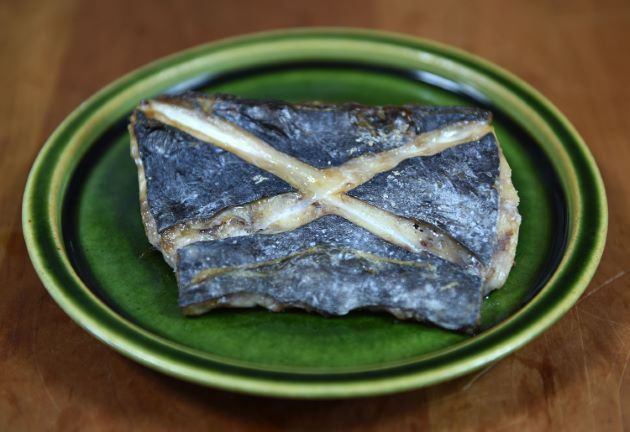 ナガタチカマスの塩焼き 内臓を包んでいる部分は腹骨もあり、刺身にするよりもこのまま煮つけか塩焼きにするとおいしい。ここでは振り塩をして1時間以上寝かせて、じっくりと焼き上げた。箸を入れると中から液汁が出て来て柔らかく、身が非常にほぐれやすくて甘い。クリックで閉じます![]()