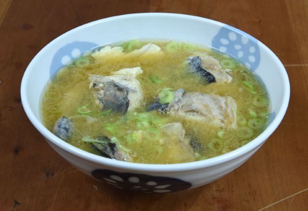 ナガタチカマスのみそ汁 皮と骨などからとてもいいだしがでる。ここでは皮付近の骨の多い部分を適当に切って湯通しする。冷水に落としてぬめりを流して、水分をよくきる。これを水から煮出してみそを溶く。非常に濃厚なだしが出る。うま味豊かでみその味とあいまってとても味わい深い。ご飯に合う。クリックで閉じます![]()