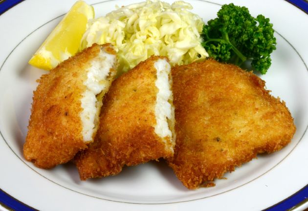 ナガヅカのフライ 水洗いして三枚に下ろし、皮を引く。頭に近い方は腹骨と血合い骨を取る。尾に近い方には小骨がない。切り身にして塩コショウ、小麦粉をまぶし、衣(水・小麦粉・卵)をまとわせてパン粉をつけて揚げる。非常に上質の白身で薄い層が重なり合っている。揚げると層の間にうまいエキスが染み出してきて硬く締まらない。身の甘味があってとてもうまい。産地などで定番料理となっているわけが食べるとわかる。
