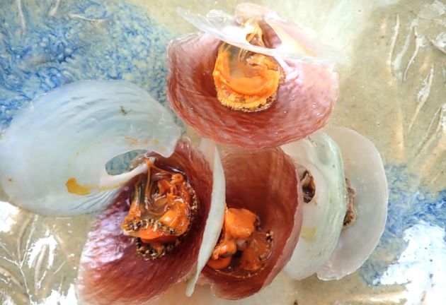 珍しさ度 珍しい貝ではない。流通上はホタテガイによく付着している。海辺では岩などについていることが多い。