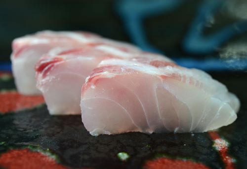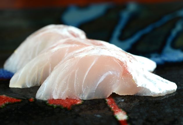透明感のある白身で血合いが赤い。熱を通しても硬く締まらない。