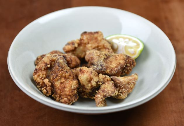 ハナザメの唐揚げ 皮を引き、適当な大きさに切る。竜田地(酒・みりん・醤油、好みで砂糖、にんにくもしくはショウガ)に漬けてもいいが、ここでは片栗粉をまぶして揚げ、揚げたてにヒバーツ(もちろんコショウでも)を振った。クセのない味わいで食べやすい。クリックで閉じます![]()