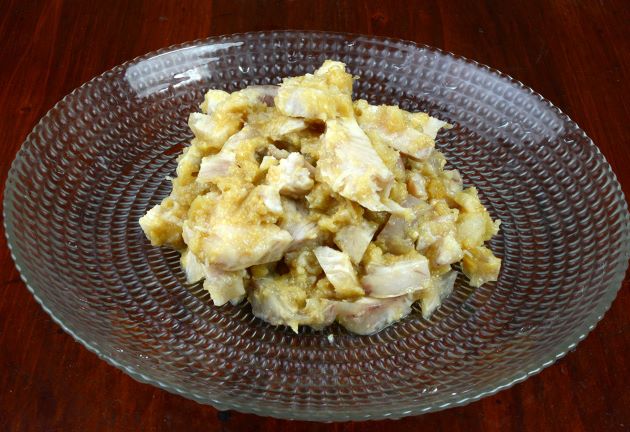 水洗いして三枚に下ろす。適当に切り、そのままゆでる。表面のざらざらが取れるようになったら、冷水に落として鱗をこそげ取る。刺身状に切り、弱い塩をした湯の中でゆでて氷水に落とす。水分をよくきり、酢みそを添える。