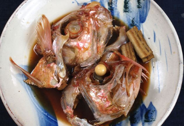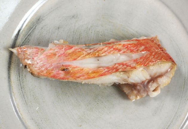 バイトレッドフィッシュの キンメダイ科ならでは脂は筋肉に均質に混ざり込んでいて、血合いが弱い。チルド輸入なのでとりあえずは煮つけにしてみる。あら煮である。煮ると少し身が痩せるものの、身自体にもうまみがありとても味わい深い。
