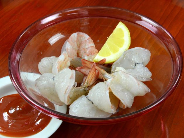 バナメイのゆびき 近年、で食べられるものが出回っているが、完全に生ではあまりエビらしい風味を感じない。軽く赤みが出るくらいにゆでて、氷水に落として水分をきる。わさびしょうゆで食べてもいいし、ケチャップとタバスコを合わせたもので食べてもいい。クリックで閉じます![]()