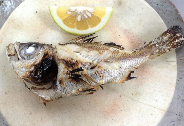 ヒゲオオメハタの塩焼き 大小ばらつきがあったので小型を1尾丸ごと塩焼きにしてみた。水洗いして塩を振り1時間以上置いてから焼く。焼けたときの皮の香りが非常にいい。水分が多い割りに硬く締まらず、身離れがよい。身にうま味があってとてもおいしい。クリックで閉じます![]()