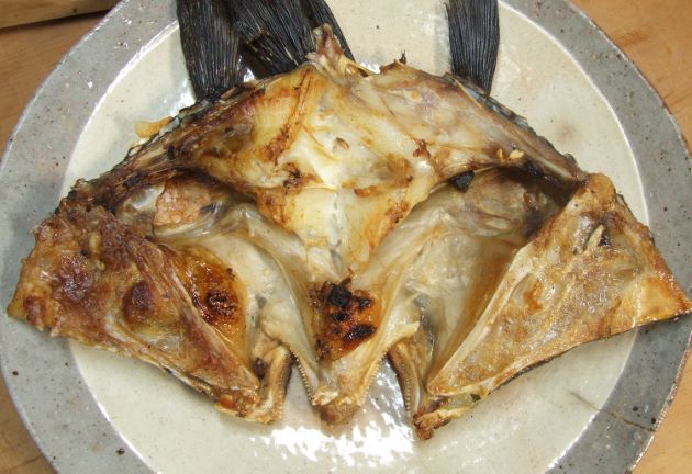 ヒゲダイの塩焼き ここでは切身ではなく、兜の部分を梨子割りにして焼いてみた。振り塩をして1時間以上置く。表面にでてきた水分をとり、じっくりと焼き上げる。脂がのっているので、焼き上げる香りがとてもいい。皮目にイサキ科独特の風味が感じられてとてもうまい。クリックで閉じます![]()