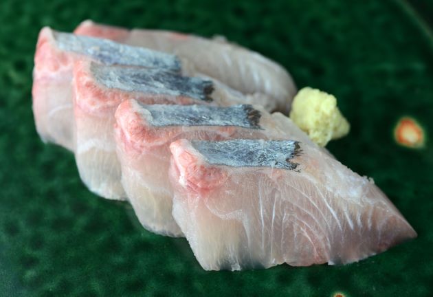 水洗いして三枚に下ろし、血合い骨を取り、刺身にしたもの。適度な食感があり、アジ科特有のうま味がある。