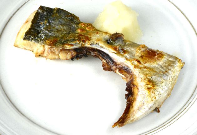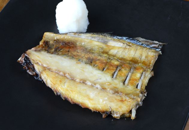 水洗いして三枚に下ろし、かまの部分だけを切り取る。振り塩をして1時間以上寝かせて焼き上げる。