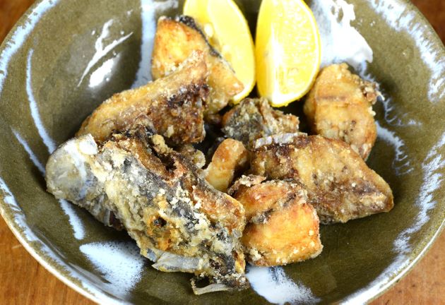 頭部やかまの部分を適当に切る。水分をよくきり、片栗粉をまぶして少し置く。粉っぽさがなくなったら低温で揚げはじめる。火が通ったら一度上げて、少し置きまた今度は中温で揚げる。