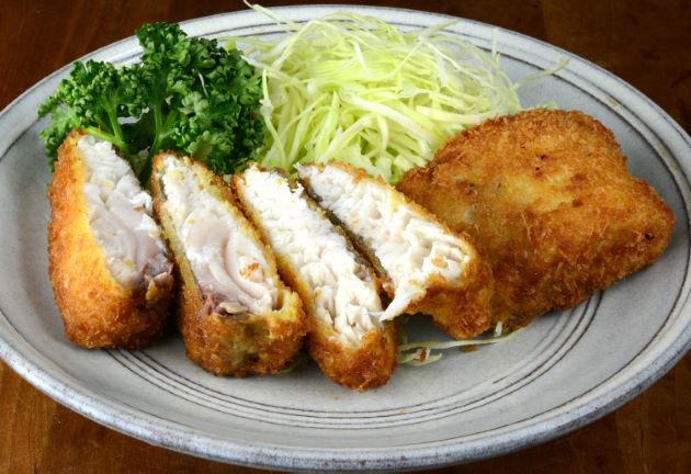 ヒシカイワリのフライ 成魚は脂が乗っているので揚げても硬く締まらず柔らかい。脂がとけ、うま味を含んだ液体と混ざり合って豊潤である。中心部分は半生なので多彩な味わいが楽しめる。クリックで閉じます![]()