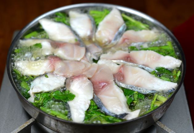 水洗いし三枚に下ろす。腹骨・血合い骨を取り、薄切りにする。だし・酒・みりん・醤油・塩を合わて一煮立ちさせておく。鍋に刻んだ芹、切り身をのせ、割り下を入れて火に掛ける。