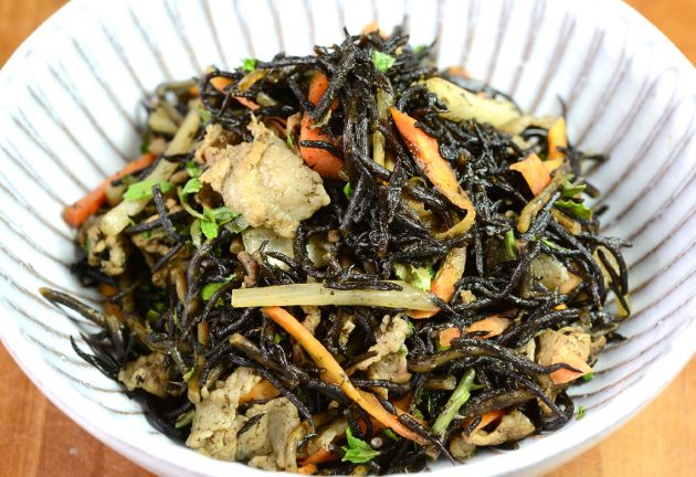 ヒジキの炒め煮 ヒジキや根菜類、魚貝類をごま油、サラダ油などで炒めて、酒、しょうゆ、砂糖などで味つけしたもの。軟らかくして、味を浸透させたい場合にはだしを使ってもいい。これをご飯に混ぜ込んでもうまい。また芽ひじきも同様に使える。また芽ヒジキで作ると混ぜご飯にしやすい。クリックで閉じます![]()