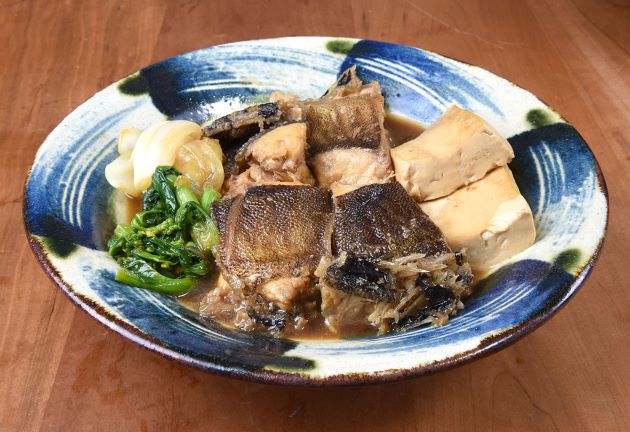 ヒラニザの煮つけ 切身を湯通しする。冷水に落としてぬめりや残った鱗を流す。水分をよくきり、酒・みりん・しょうゆ味・水で煮る。ここでは豆腐、玉ねぎ、青菜と一緒に煮たが、魚単体で煮てもいい。意外に臭みはほとんどなく、食べやすい。ご飯に合う。クリックで閉じます![]()