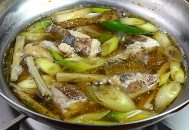 ヒレグロの煮つけ 水分が多く、煮崩れやすく、旨みが少ないので、醤油、みりん、酒などでおぎなってやる。やや大目の水分で煮上げていく。こうすると弱点である水っぽさが目立たなくなり、身がしっとしして柔らかいのがよい点となる。