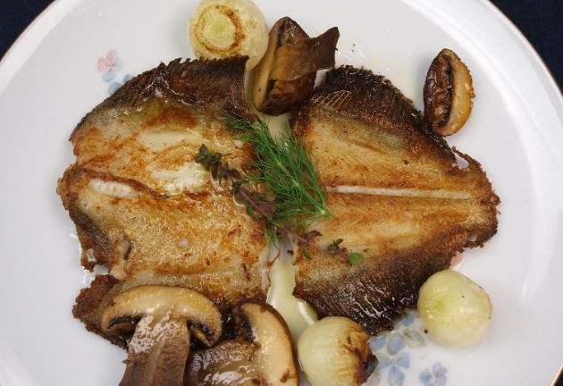 ヒレグロのムニエル 油、バターなどを利用してソテーするとうまい。水洗いして無駄な頭部と尾を切り落とす。水分をていねいにとり、塩コショウして小麦粉をまぶして多めの油でじっくりソテー。仕上げにマーガリン(バター)で風味づけする。