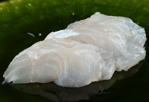 血合いがない透明感のある白身でやや水分が多い。熱を通すとやや硬く締まる。栄養