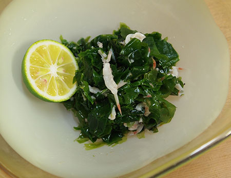 湯通し◆生は湯通し、乾燥品は水でもどして、水分を絞る。これを酢のもの、サラダなどに使う。好んで食べる地域・名物料理
