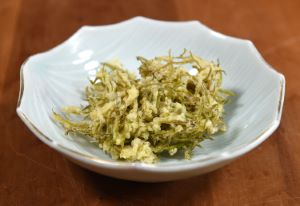 乾物は熱を通すと赤味が強くなるものの、すぐに糊状になる。乾物は最低限に熱を通すか、そのまま汁に落とす。和えものなどは、そのまま和えるだけでいい。栄養