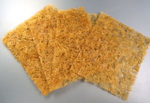 フクロフノリの天ぷら 乾物を使う。軽く水に漬けてもどす。あまり戻しすぎないのがいい。乾いたまま揚げるとパチパチとはぜる。小麦粉をまぶして、衣をつけて短時間でさくっと揚げる。磯の香りが強く、心地よい歯触りも楽しめる。非常に美味。クリックで閉じます![]()