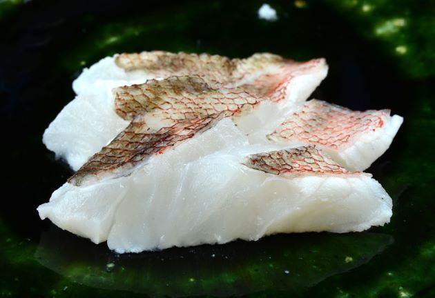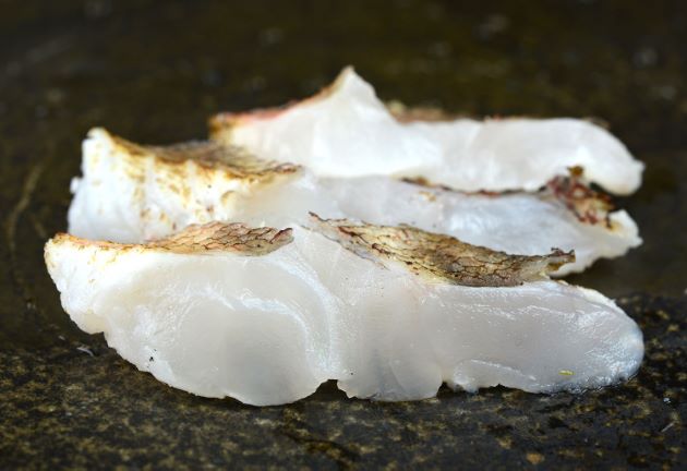 透明感のある白身であるが血合いが弱く見た目はあまりよくない。熱を通しても強く締まらない。