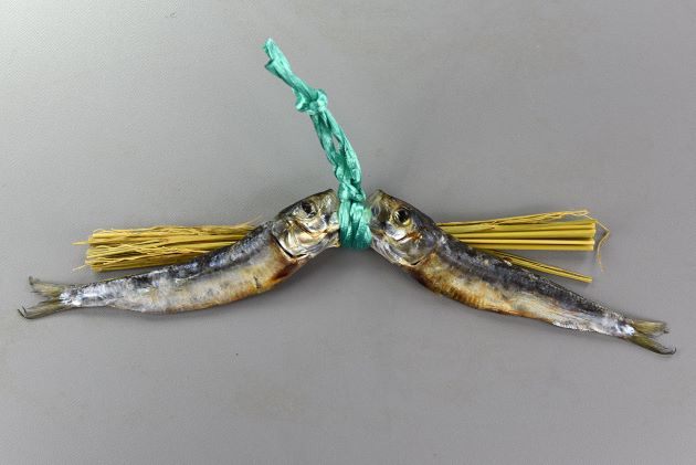正月に塩鰯 〈塩鰯を一匹宛膳につけ尾頭付きとして祝う。残しの塩は汁物のだしに使う〉[徳島県美馬郡貞光町(現つるぎ町)]