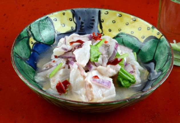 マルクチヒメジのセビチェ 刺身にしたときの切れ端などを集めて置く。やや細かく切り、塩・ライム・辛い唐辛子で1時間程度しめる。辛味と酸味で爽やかな味わいになる。スピリッツの肴に向いている。クリックで閉じます![]()