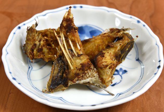 ミナミイスズミの素揚げ 熱帯域では、臭みのある魚は唐揚げではなく、粉を使わずに素揚げにすることが多い。表面はとても香ばしく、中は鶏肉のように締まる。塩・コショウでもいいが、しょうゆで食べてもいい。クリックで閉じます![]()