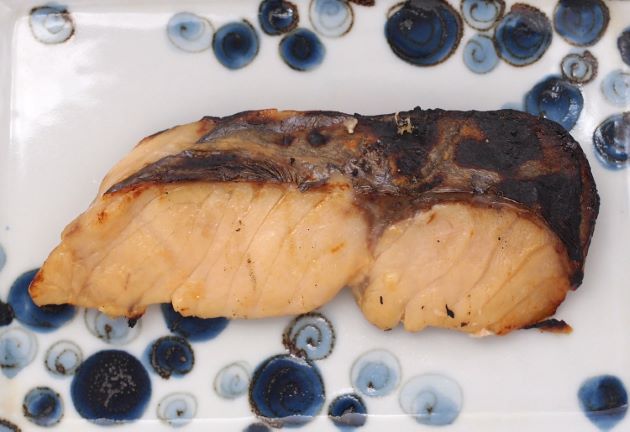 後半部分を切身にする。布巾にくるんで冷蔵庫に数時間置き水分を抜く。これをみそ(西京味噌)・みりんの地に1日漬け込む。