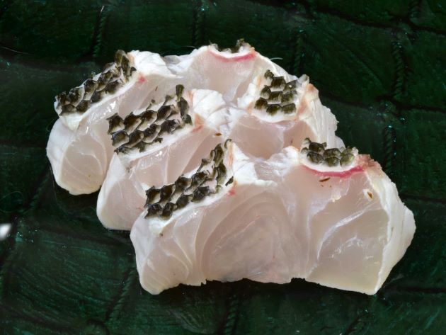 唇の黄色、胸鰭のつけ根の赤い斑紋の鮮やかなもの。触って張りのあるもの。味わい