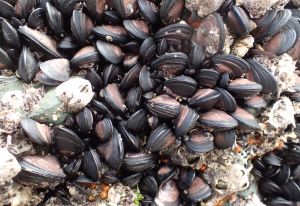 国内の海岸線でもっとも普通に見られる二枚貝。海に沈まない飛沫帯などにも普通でまとまって取れるので食用とする地域が多いと考えている。