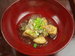 メカジキのみそ汁 筋の多い部分、皮を使ってみた。意外にうま味成分が少ないので、適宜に切り、昆布だしで煮だしてみそをとく。みそ、野菜などはお好みで。あっさりした中にメカジキのうま味が感じ取れてとても美味。皮は汁に向いている。クリックで閉じます![]()