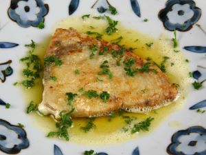 メカジキのムニエル 生の切り身はそのまま塩コショウ。冷凍切り身は少し水分をのぞく。これに小麦粉をまぶして多めの油でじっくりとソテー。仕上げにバターの風味をつける。油を使うとあまり強く締まらず、バターとの相性も良くてとてもおいしい。クリックで閉じます![]()