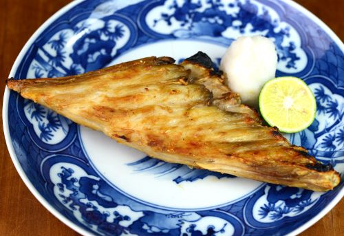 メカジキの幽庵焼き(柚子庵焼き) 切り身をしょうゆ・みりん・酒同割りの地、柚子の搾り汁につけ込んだもの。焦げないように慎重に焼き上げる。単に塩焼きにするとパサつく感じがするが、しょうゆのうま味が合わさっていいあんばいになる。クリックで閉じます![]()