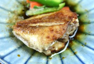 メガネハギのバター焼き 水洗いして水分をよく拭き取る。塩コショウして多めの油でじっくり香ばしくソテーする。出来上がりにマーガリン(バターでも)で風味づけする。初冬の固体は身に脂があり、ソテーしても硬く締まらずとてもおいしい。クリックで閉じます![]()