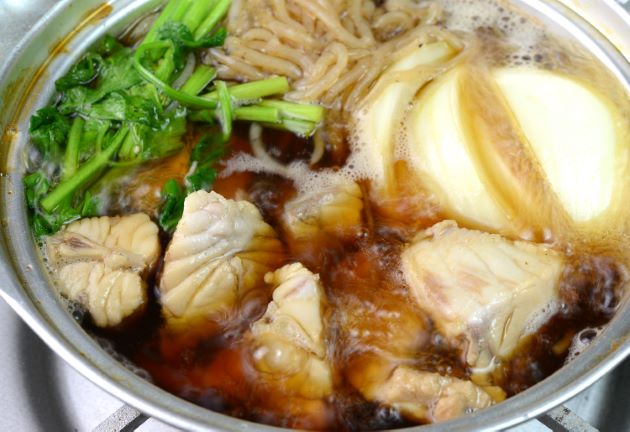 醤油味で煮ると身が締まり、だんぜん味わいが増す。白身の鍋のよい部分が出てくる。