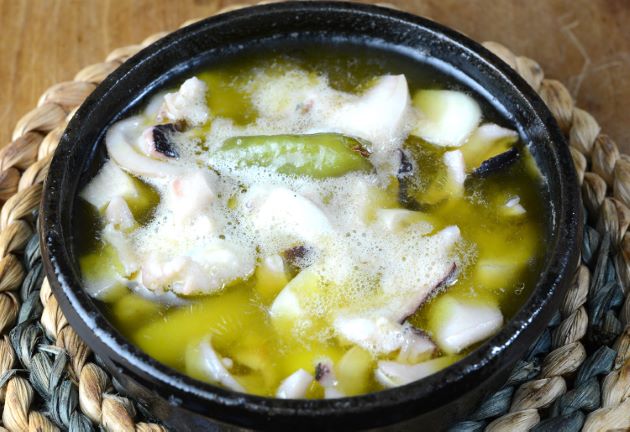 ゆでたタコの頭を刻む。火に掛けられる容器にタコ、にんにく、虎の尾(尾鷲市の辛い青唐辛子)、オリーブオイルを加えて火をつける。好んで食べる地域・名物料理