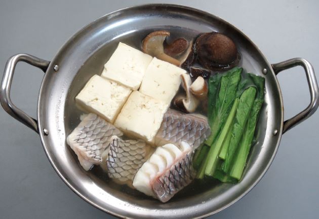 ヤンバルシマアオダイのちり鍋 中骨を湯通しして冷水に落とす。水分をよくきり、昆布と水と中骨を鍋に入れてだしをとる。酒・塩で味つけして湯通しして霜降りにした切り身や野菜を煮ながら食べる。身は煮ると軟らかく口に含むとほどよく崩れてくれる。甘味があっておいしい。クリックで閉じます![]()