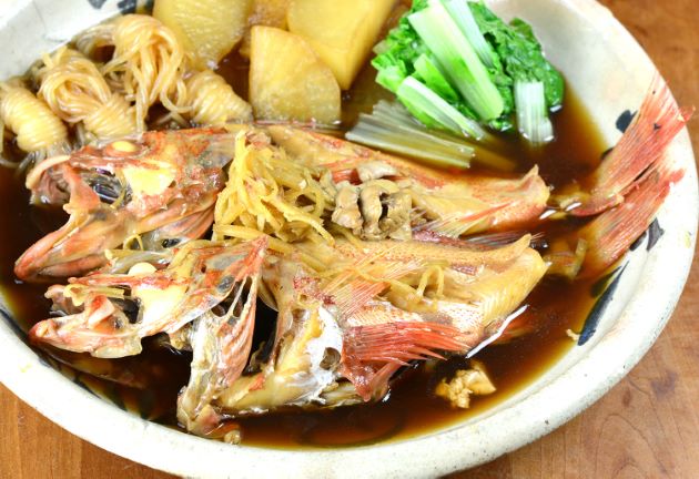 ユメカサゴの料理・レシピ・食べ方/煮る(しょうゆ煮、塩煮、アクアパッツァ)、汁(鍋、潮汁、みそ汁)、生食(皮霜造り、焼霜造り)、揚げる(唐揚げ)、ソテー(ムニエル、バター焼き)
